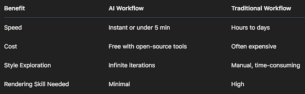 In this article, I’ll show you how these free, open-source tools can change how you work — whether you’re in architecture, interior design, product development, fashion, game design, or visual storytelling. And I’ll share a free guide you can download right now to get started with your own offline AI-powered workflow.